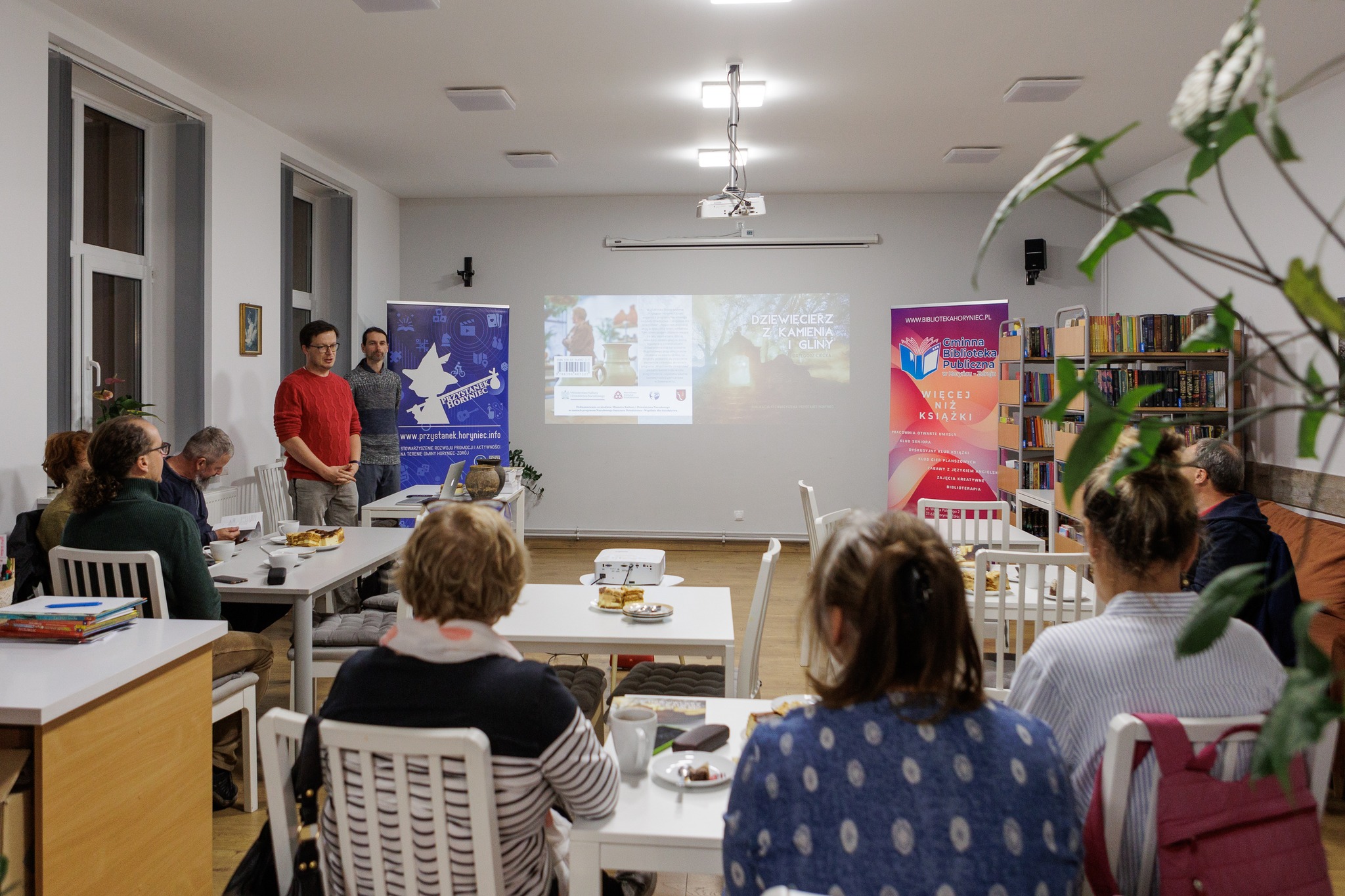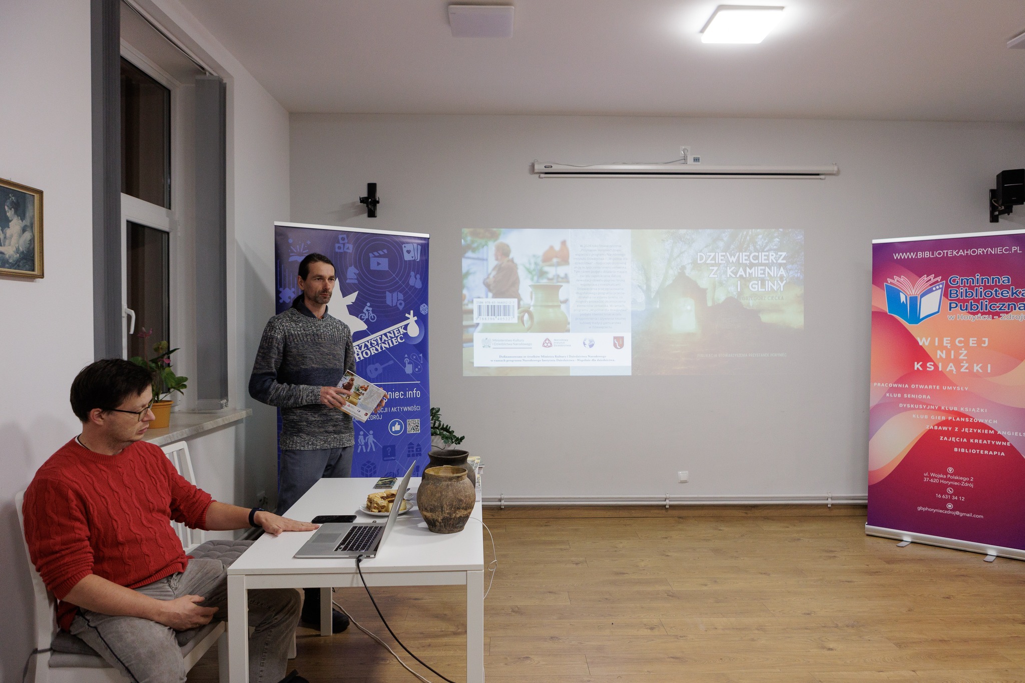 Za nami wyjątkowe spotkanie podsumowujące nasz projekt, na które zaprosiliśmy wolontariuszy, mieszkańców Dziewięcierza oraz gminy Horyniec-Zdrój. Każdy z uczestników mógł zabrać ze sobą świeżo wydaną publikację, która opowiada historię projektu oraz samej miejscowości. Był to też moment premiery filmu podsumowującego nasze działania – z dumą i wzruszeniem obejrzeliśmy go wspólnie, wracając myślami do chwil spędzonych na cerkwisku i na warsztatach garncarskich.