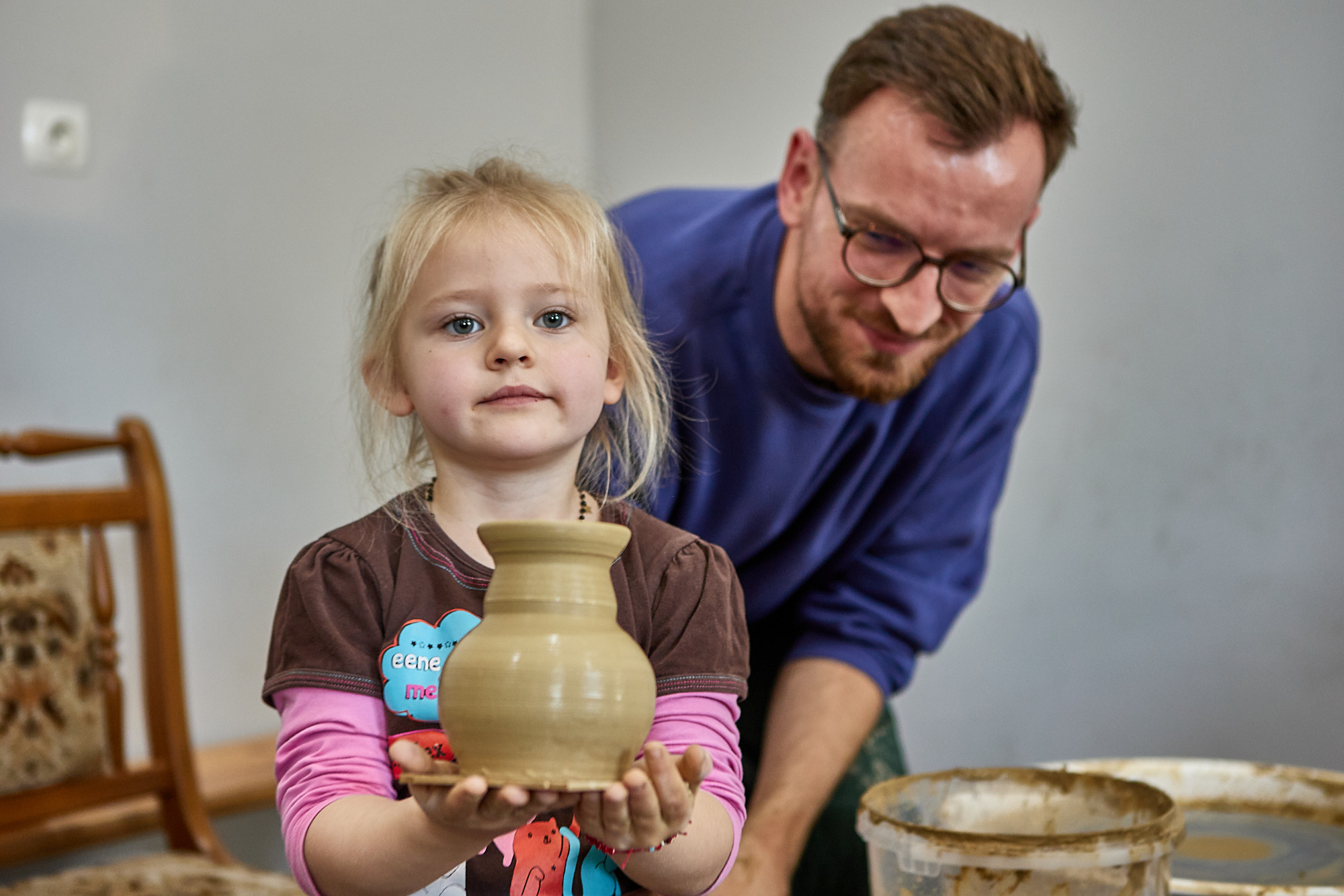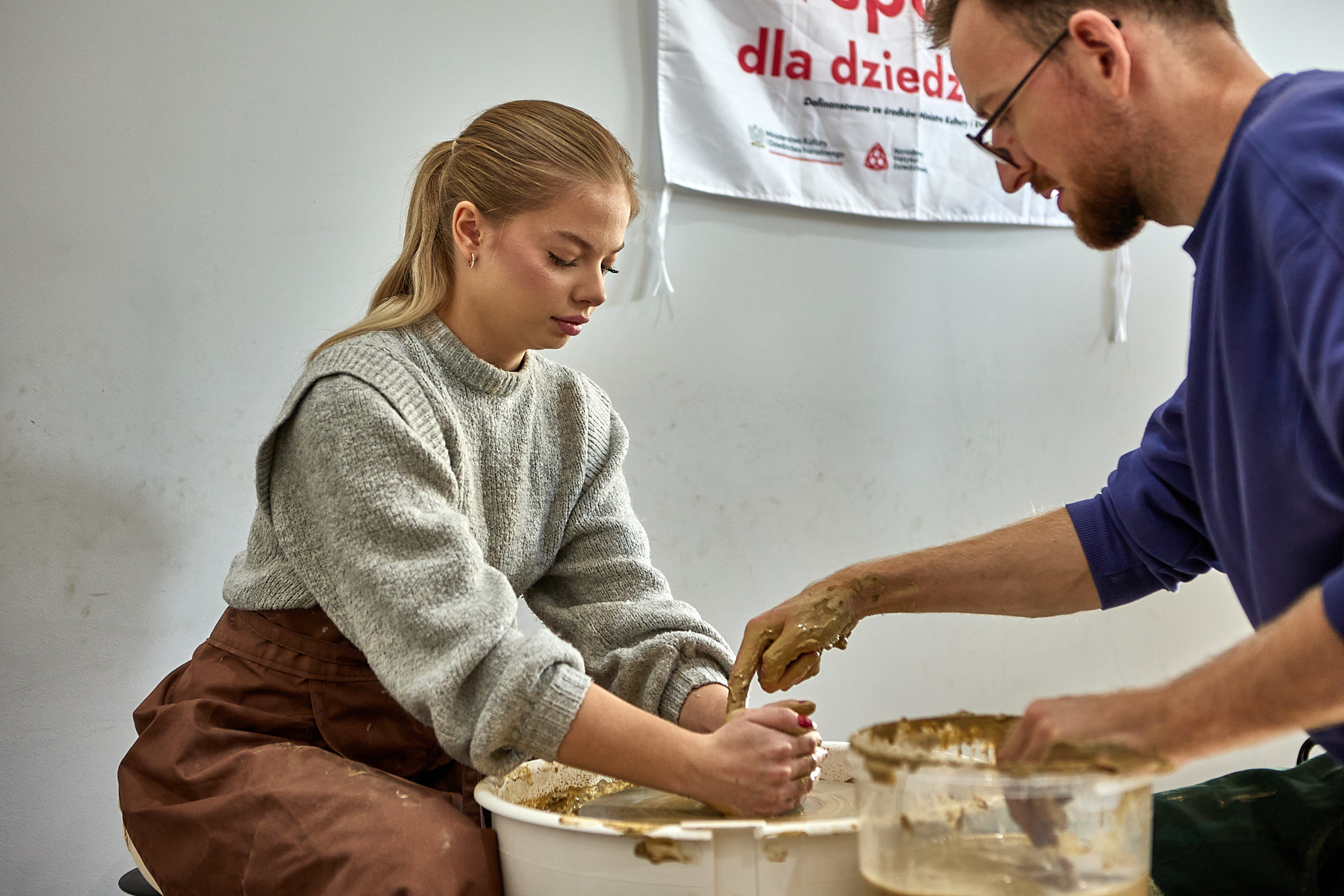 Ogromną radość sprawiła nam szczególnie liczba dzieci, które z ciekawością i zaangażowaniem uczestniczyły w zajęciach! Ich zapał i chęć poznawania tej niemal zapomnianej sztuki dają nadzieję na jej trwalsze zakorzenienie w lokalnej społeczności. Sztuka garncarstwa, niegdyś obecna w Dziewięcierzu, przez ostatnie około 70 lat była tu nieobecna, mimo że przed wojną Dziewięcierz był jednym z największych ośrodków garncarskich w regionie. Garncarstwo, podobnie jak kamieniarstwo bruśnieńskie, jest dla nas dziedzictwem o ogromnym potencjale, które pragniemy odkrywać na nowo.